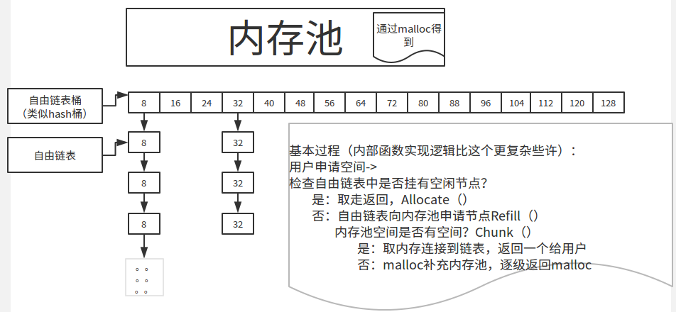 自由链表所挂区块都是 8 的整数倍,因此当我们需要非 8 倍数的区块,往往会导致浪费。