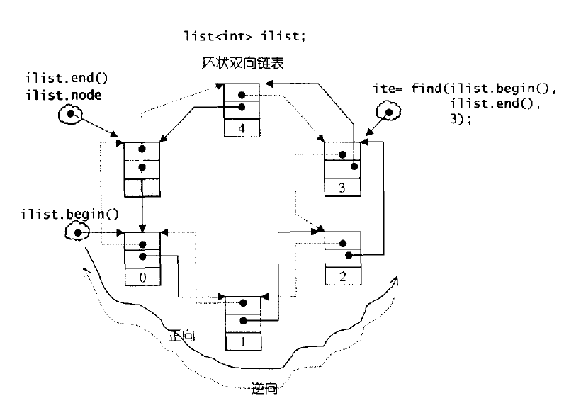 双向迭代器:很像前向迭代器,只是它向后移动和向前移动同样容易。