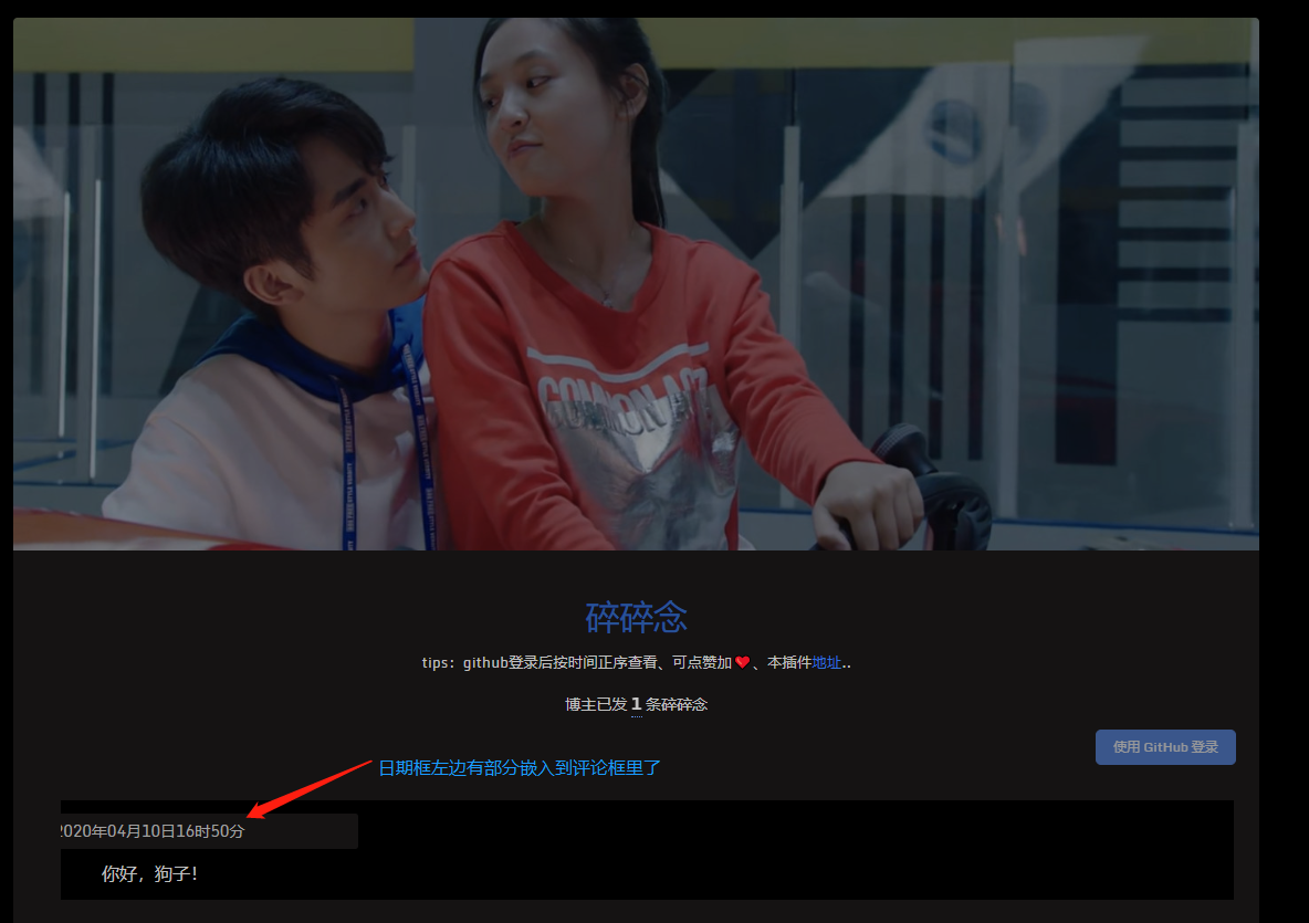 碎碎念在宽屏浏览时,会出现评论框覆盖日期框的问题。如下图所示: