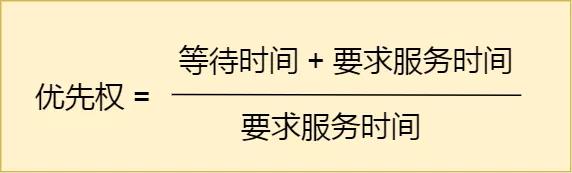 每次进行进程调度时,先计算「响应比优先级」,然后把「响应比优先级」最高的进程投入运行,「响应比优先级」的计算公式: