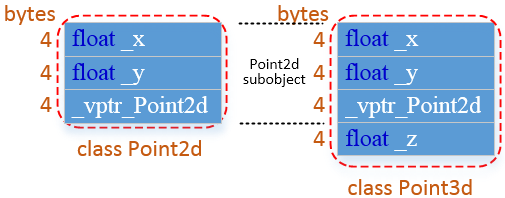 我们可以知道 sizeof(Point3d) 为 12 bytes。一如之前的风格,我们来看一下 class Point3d 的对象模型,如下: