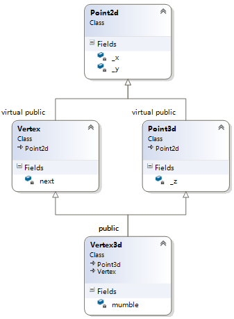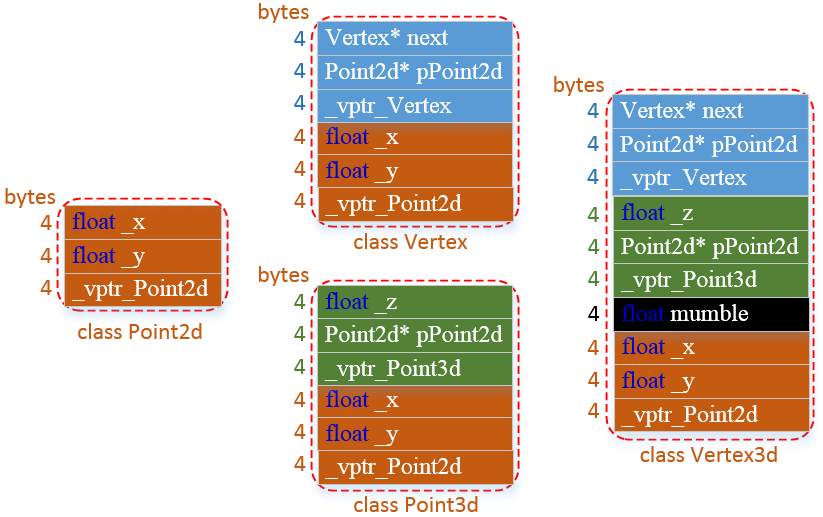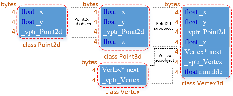 当然,对于那些单一继承、多重继承来的 data members 也是跟上面的一样,都是寻址+偏移完成。但是,有一个叫 virutal 关键字我们每次看到它的时候心里就应该知道要特殊对待,这就是下面要讲的内容。