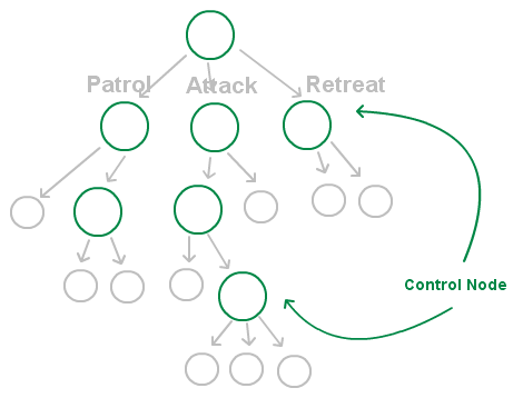 除了行为节点,其余一般称之为控制节点(Control Node),用树的“学名”的话,就是那些父节点,如下图绿圈表示