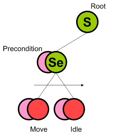 前提就提供了“选择”的依据,它包含了进入,或者说选择这个节点的条件,当我们用到选择节点的时候,它就是去依次测试每一个子节点的前提,如果满足,则选择此节点。由于我们最终返回的是某个行为节点(叶节点),所以,当前行为的“总”前提就可以看成是: